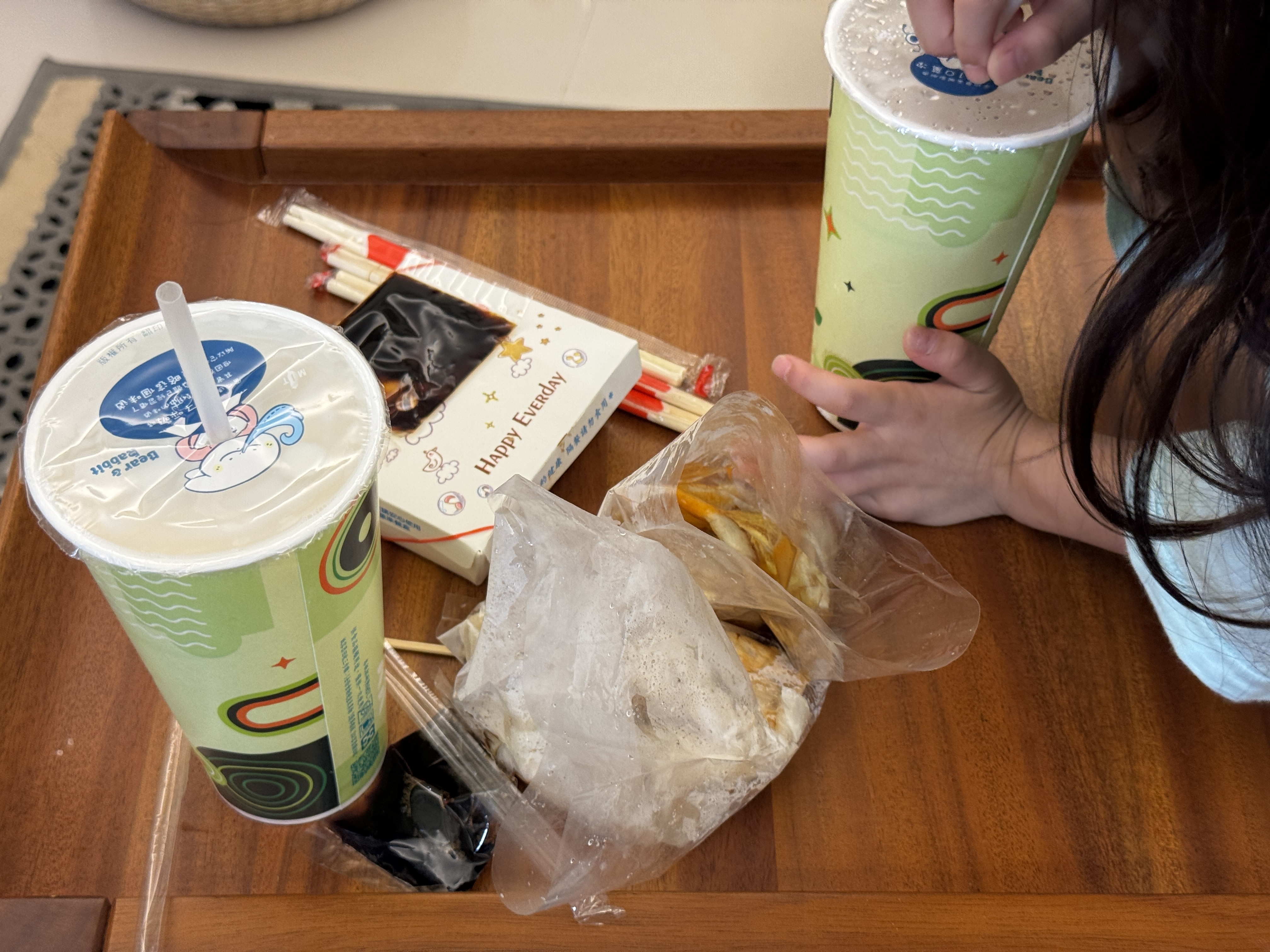 첫째가 지난번 대만 여행 때부터 또우장 러버였거든요. 이번에도 센스 있게 달지 않은 따뜻한 또우장과 차갑고 달콤한 또우장을 하나씩 사와서 아침을 풍성하게 채웠습니다. 아이들과 나눠 먹는 따뜻한 국물은 그 자체로 여행의 맛이었어요.