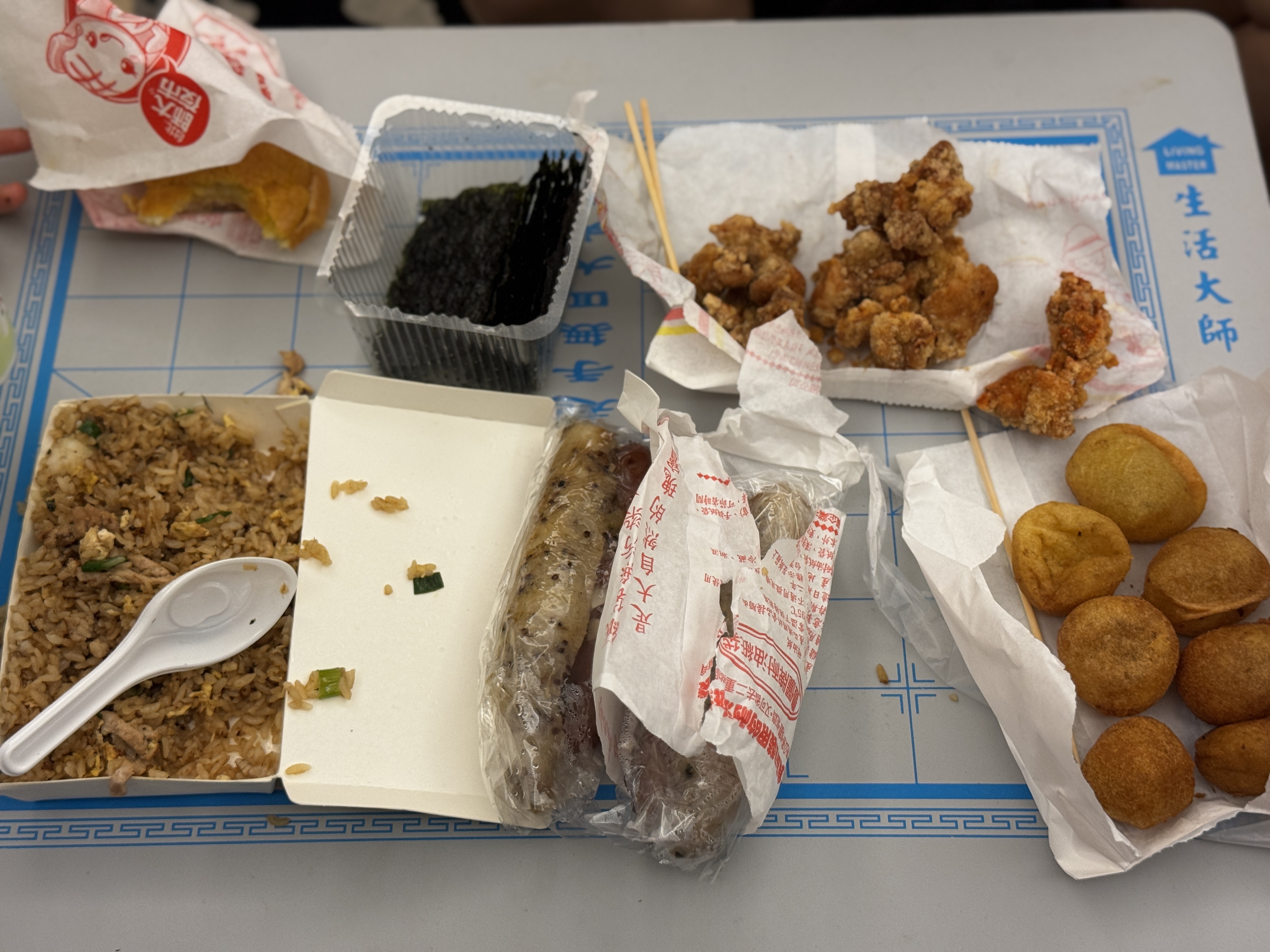 그 사이 남편은 리우허 야시장에 잠깐 다녀와 먹거리를 사 왔습니다.