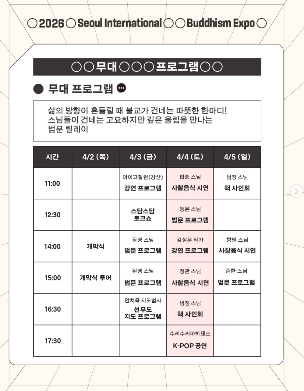 | 행사명 | 2026 서울국제불교박람회 (BEXPO 2026) |