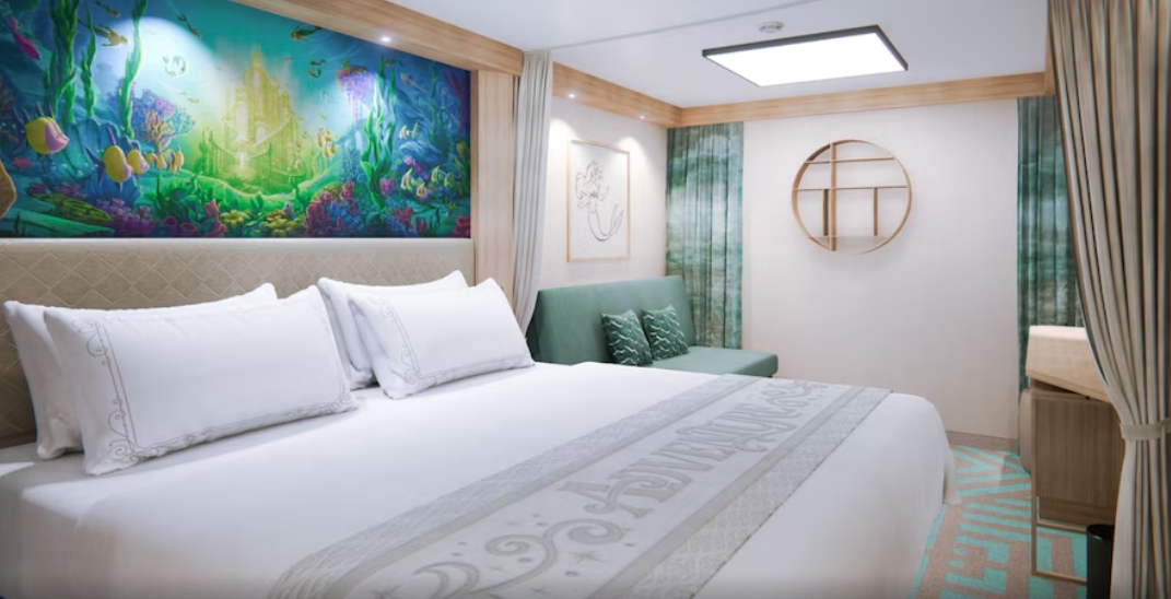 창문이 없는 내측 객실로, 가격이 가장 저렴합니다. 디즈니 크루즈의 특성상 선내 콘텐츠가 워낙 풍부해 객실에서는 잠만 자고 나온다는 후기가 많습니다. 예산을 최대한 낮추고 싶거나 선내 액티비티 위주로 일정을 채울 계획이라면 인사이드 객실이 가장 합리적인 선택입니다.
